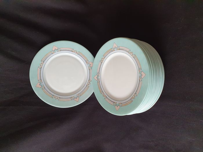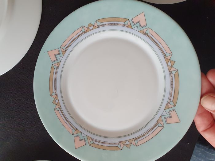 Lot de 10 assiettes a dessert plates Esso blanches vertes et roses Diamètre 19,5 cm - photo numéro 6