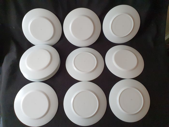 Lot de 10 assiettes a dessert plates rondes blanches motifs verts et roses Marque Esso Diamètre : 19,5 cm Hauteur : 1,5 cm Poids : 250 grammes x 10 Bon état