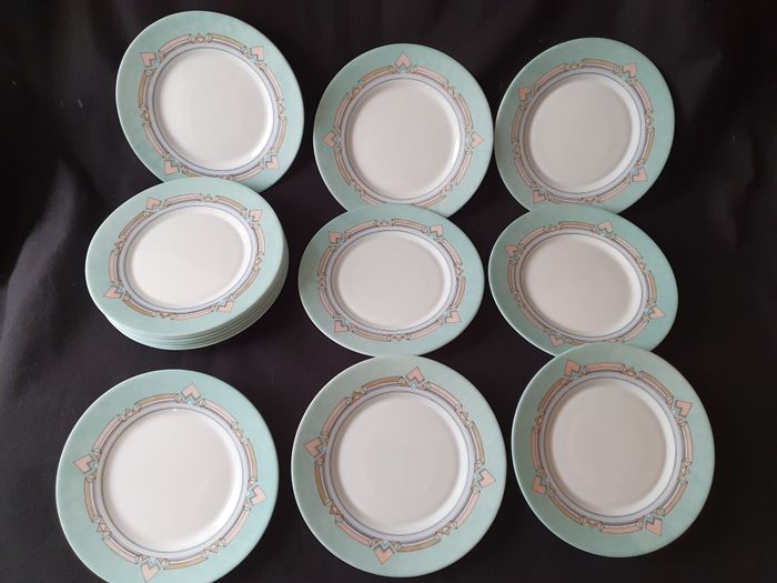 Lot de 10 assiettes a dessert plates Esso blanches vertes et roses Diamètre 19,5 cm - photo numéro 1