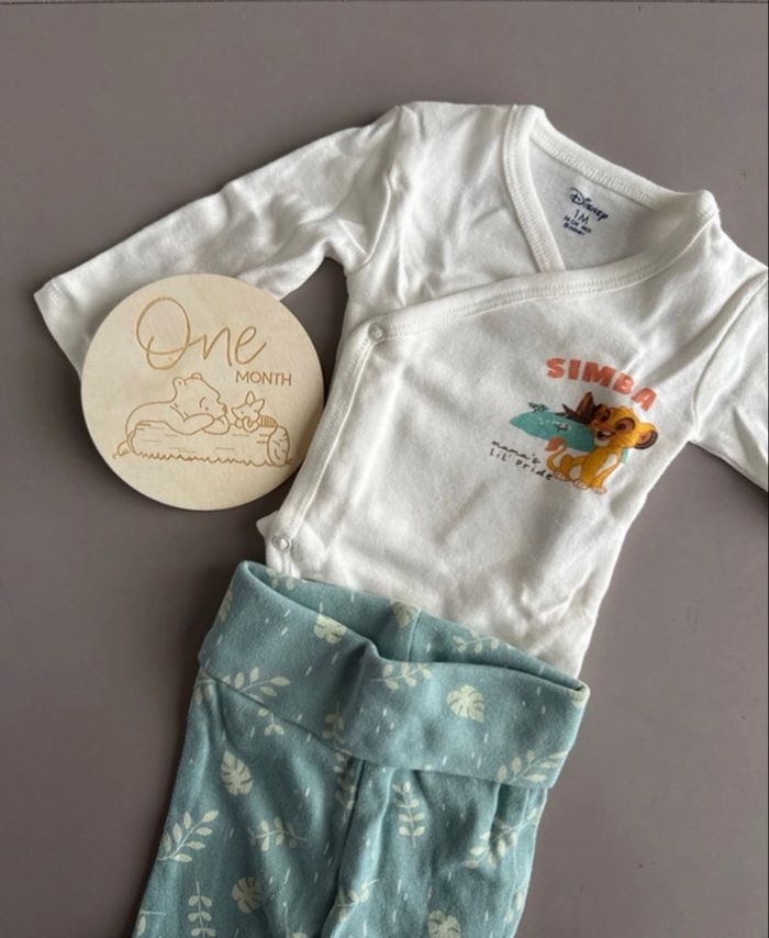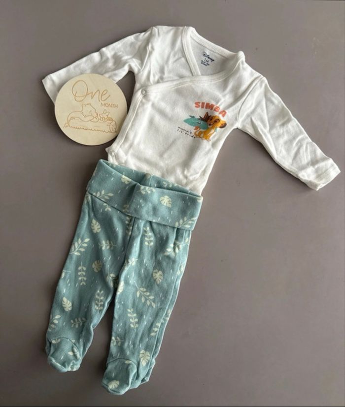 Tenue Disney composée d’un body manche longue qui s’ouvre sur l’avant + 1 legging avec pied Taille 1 mois 56cm
