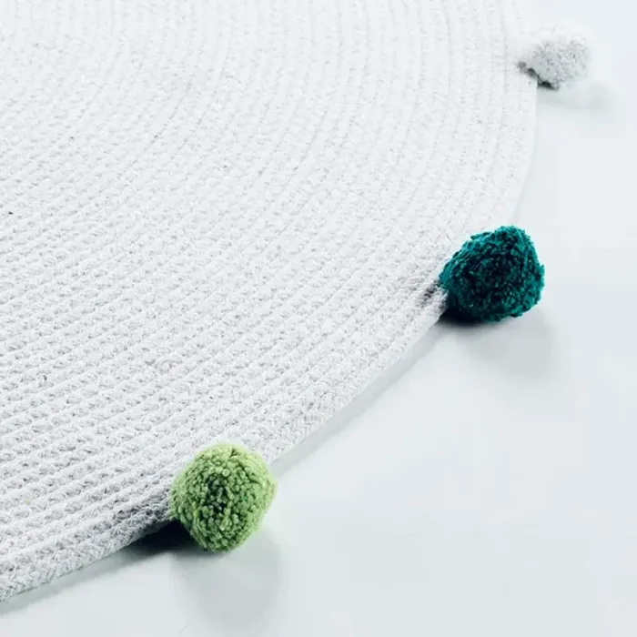 Craquez pour l'élégance et le style moderne et contemporain de ce formidable Tapis Rond Enfant "Pompomparty" 90cm Blanc & Vert ! Caractéristiques : Dimensions : D. 90 cm Produit Packagé : L. 12 x l. 6 x H. 95 cm Matières : 48% Polyester, 39% Coton, 10% Viscose & 3% Fibres Spécificités : Pratique & Utile Tapis Enfant Forme Ronde A Pompons Poids : 1,42 kg Coloris : Blanc & Vert