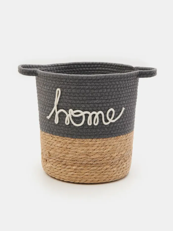 Organisez votre intérieur avec style grâce à ce panier de rangement “Home”, aux tons gris et beige. Pratique et élégant, il mesure 27 cm de diamètre et 29 cm de profondeur, idéal pour stocker jouets, linge ou accessoires tout en ajoutant une touche déco à votre pièce.