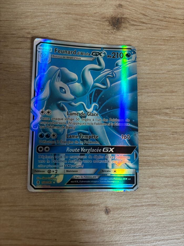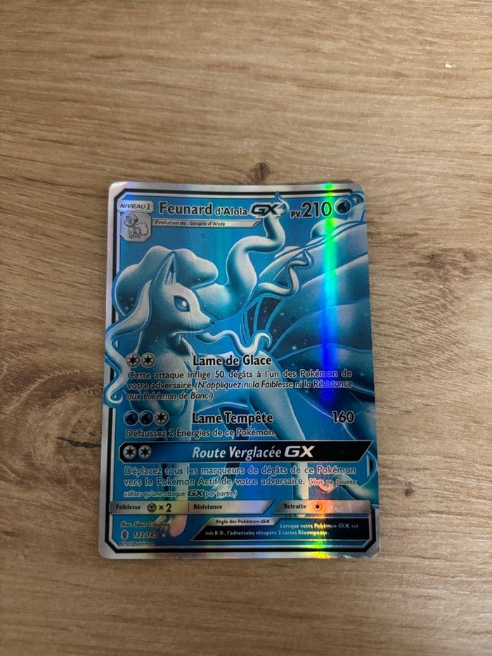 Carte Pokémon Feunard d’Alola GX – 132/145 🇫🇷 Version française Set : Soleil & Lune – Gardiens Ascendants État : Bon état — quelques légères marques normales d’usage (voir photos). Carte authentique, holographique GX, parfaite pour jouer ou compléter une collection. Envoi rapide