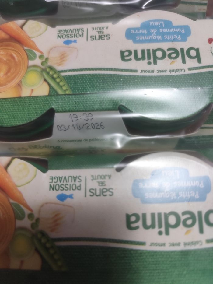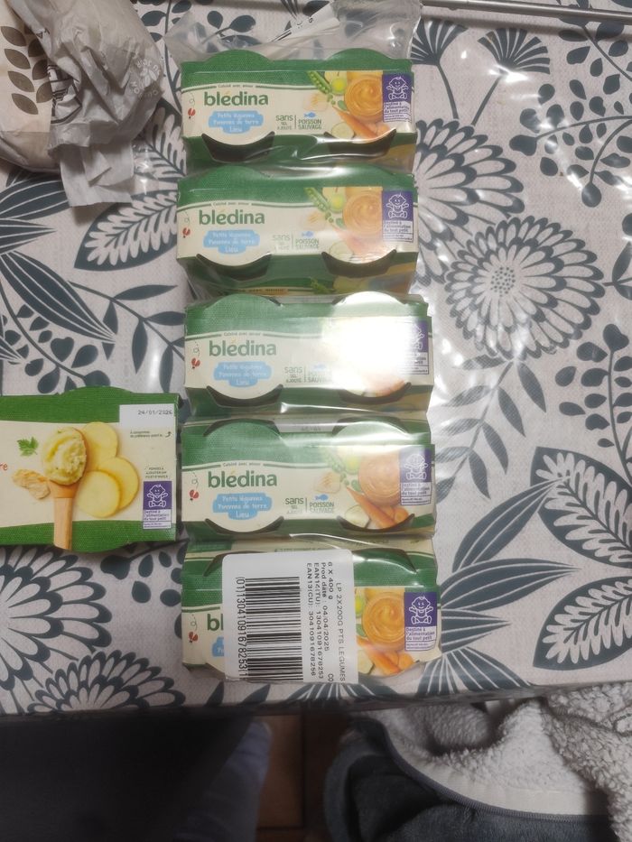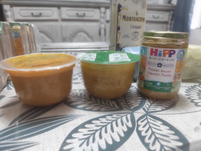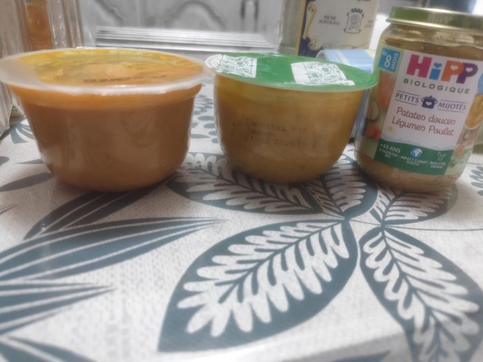 Vend lot de de 10 petits pots petits légumes pommes de terre lieu 6 mois DLC 3 10 26 Écrasé de pommes de terre et poulet en persillade 8 mois DLC 24 01 2026 Et Un je donne avec légumes saumon DLC 180326 Un carotte riz jambon DLC 21 03 26 Un petit pot patate douce légume poulet DLC 30 04 26