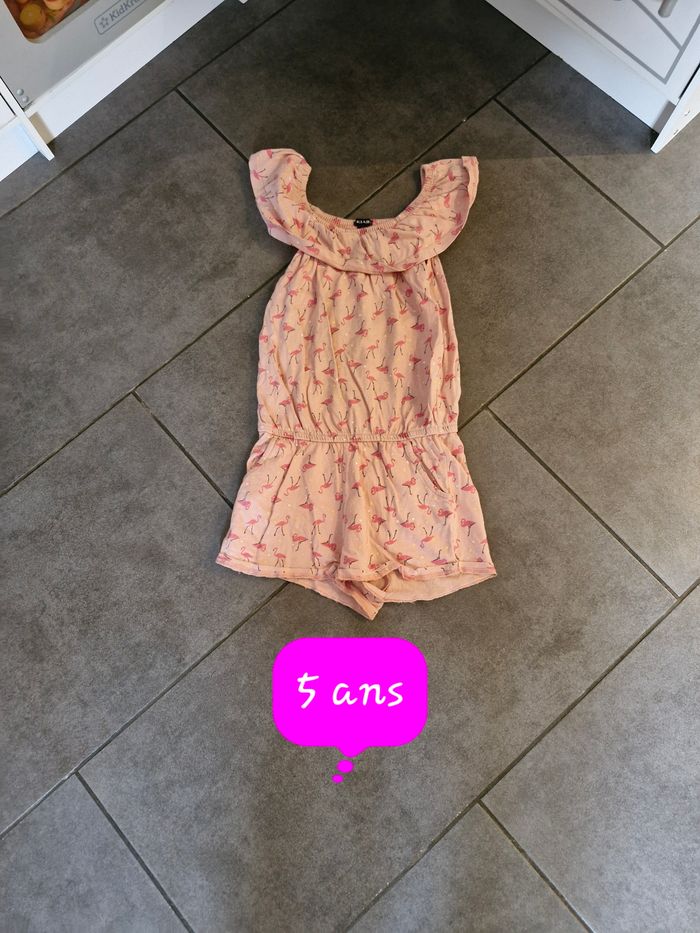 Combi-short fille 👧 Taille 5 ans Marque : Kiabi Rose motif flamand rose Réduction sur les lots activé ☺️ Défaut voir photo 📷