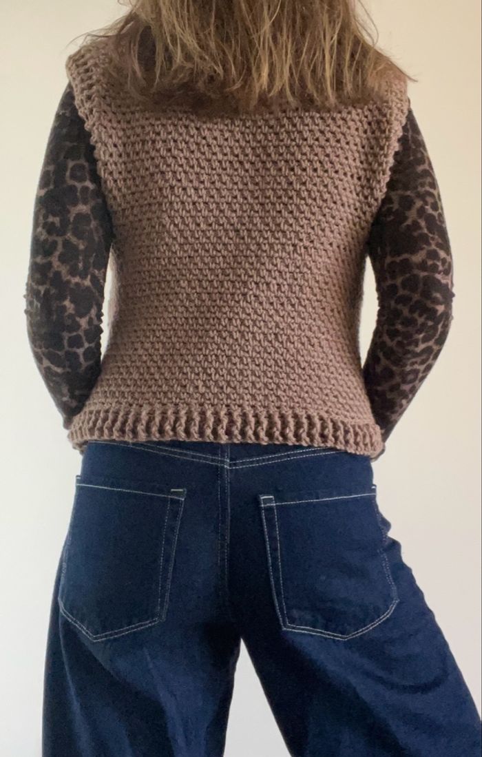 Pull débardeur au crochet fait main camel - photo numéro 3