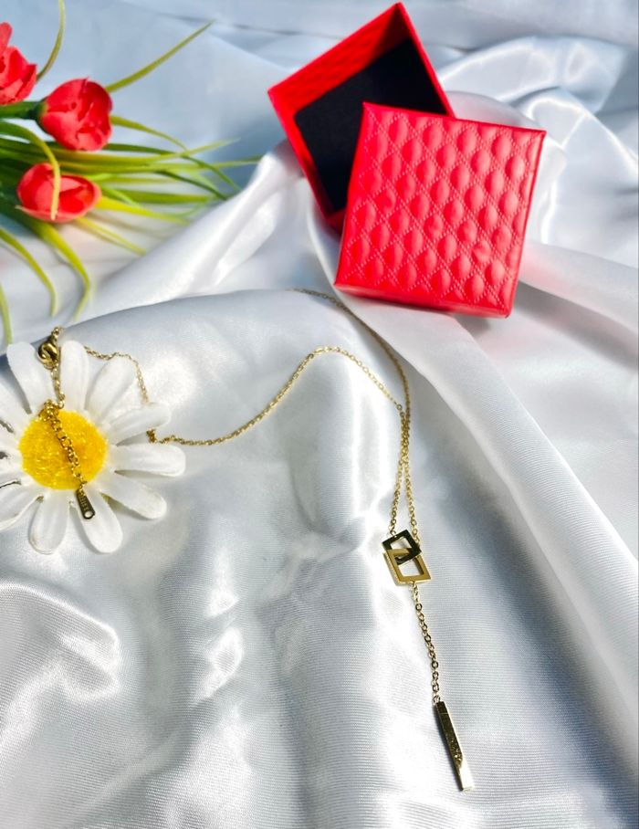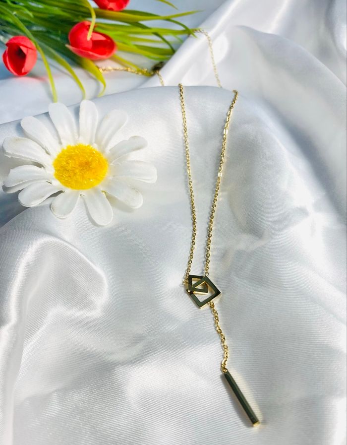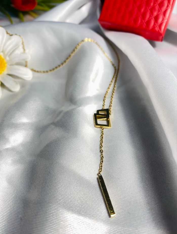 Joli collier couleur dorée en acier inoxydable, avec pendentif géométrique et chaînette pendante, très élégant et tendance. Chaîne réglable de 21 cm à 25 cm, idéale pour s’adapter à toutes les tenues. 🔸 Matière : acier inoxydable 🔸 Couleur : doré 🔸 Longueur : réglable 21–25 cm 🔸 Style : moderne / minimaliste 🔸 État : neuf 🔸 Fermeture : réglable Ne noircit pas, résistant à l’eau 💧 Parfait pour un look chic au quotidien ou pour une occasion spéciale ✨ Envoi rapide 📦