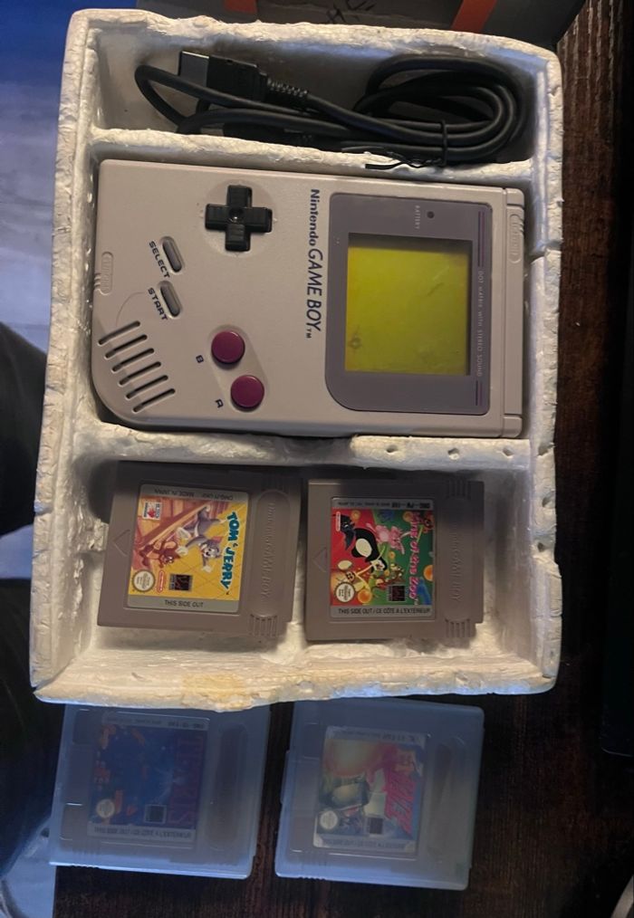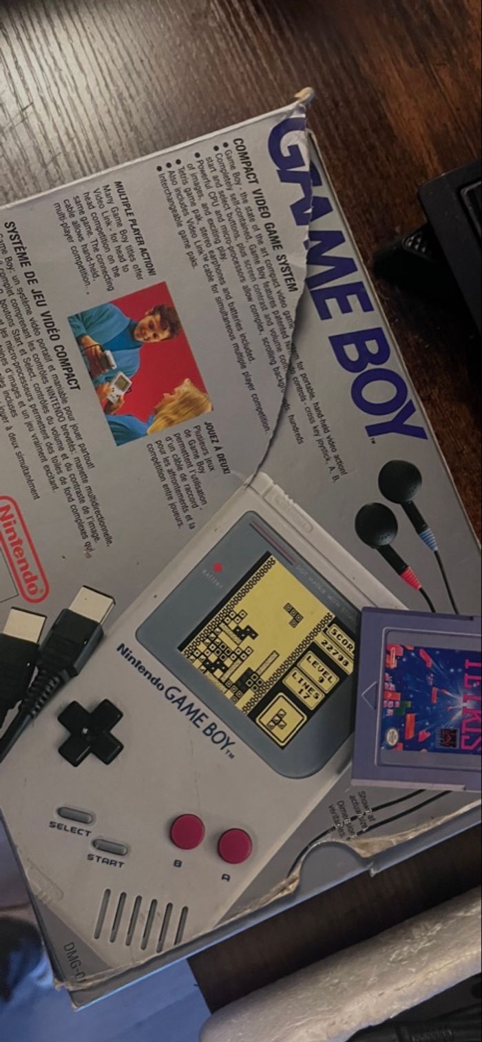 Console game boy pack terris 1991 en très bonne état de fonctionnement avec sa boîte d’origine malheureusement en très mauvaise état et non complète voir les photos . Vendu avec 4 jeux