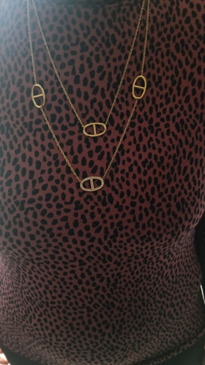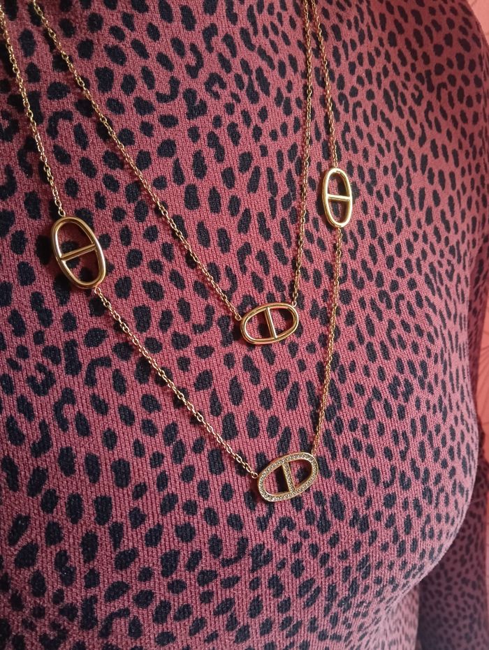 Sautoir collier tendance en acier inoxydable neuf dans son emballage d'origine.