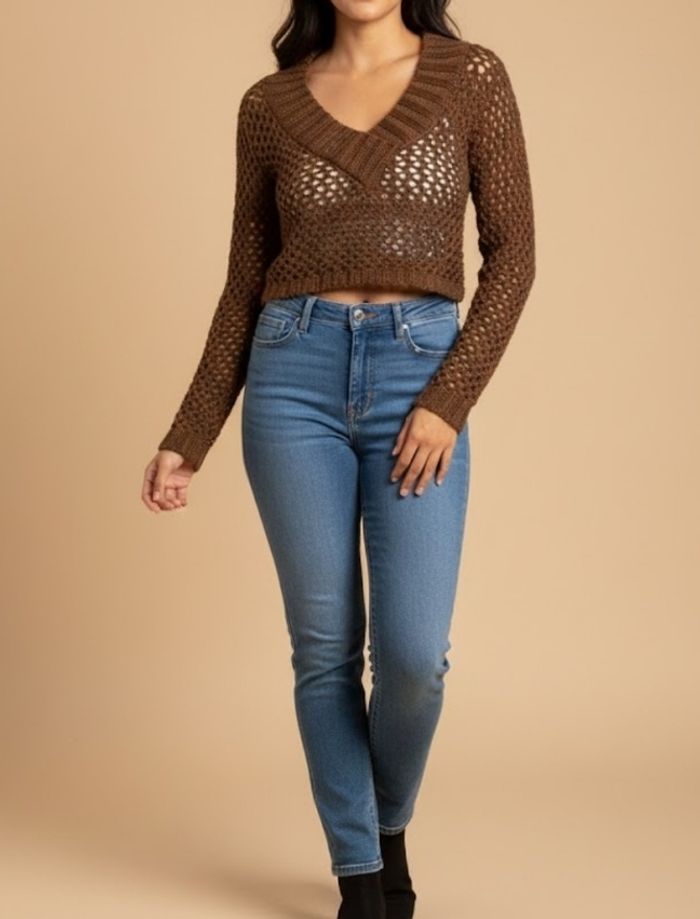 Pull court crochet marron – Taille S – Style bohème