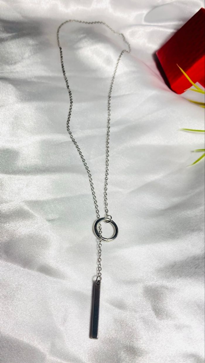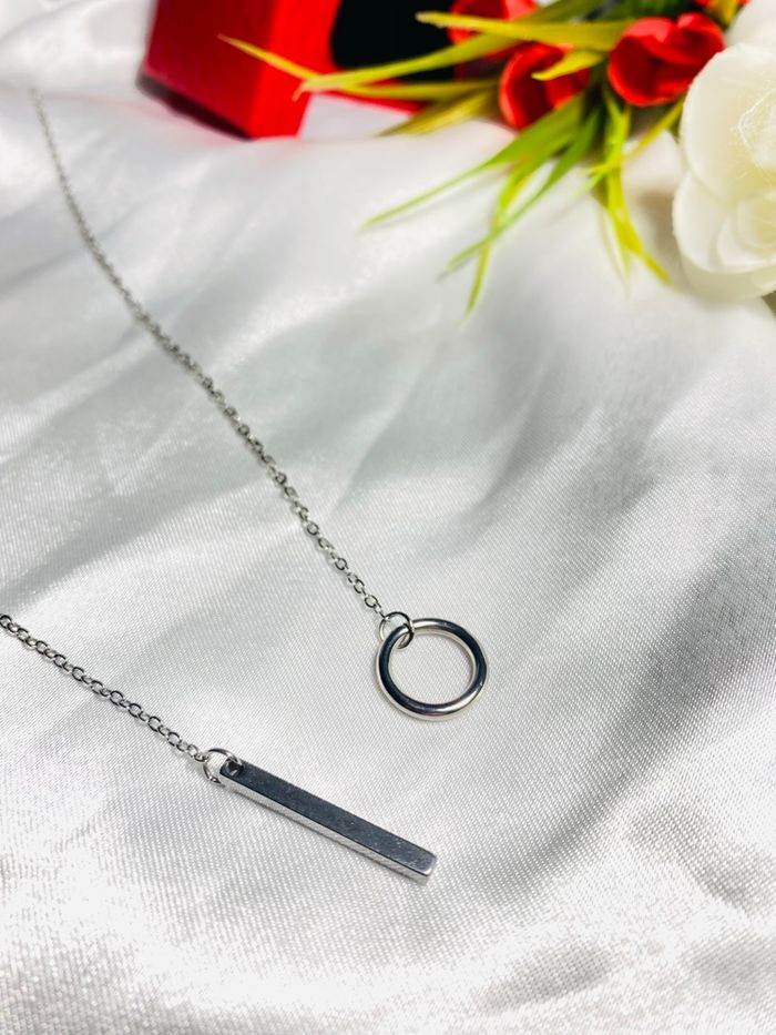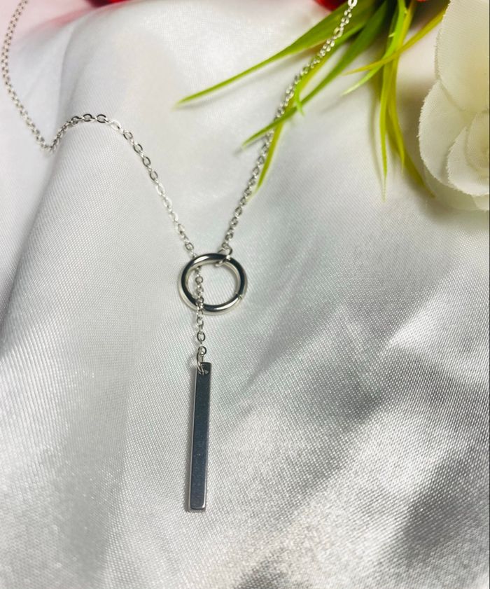 Collier minimaliste en acier inoxydable – pendentif barre & anneau - photo numéro 1