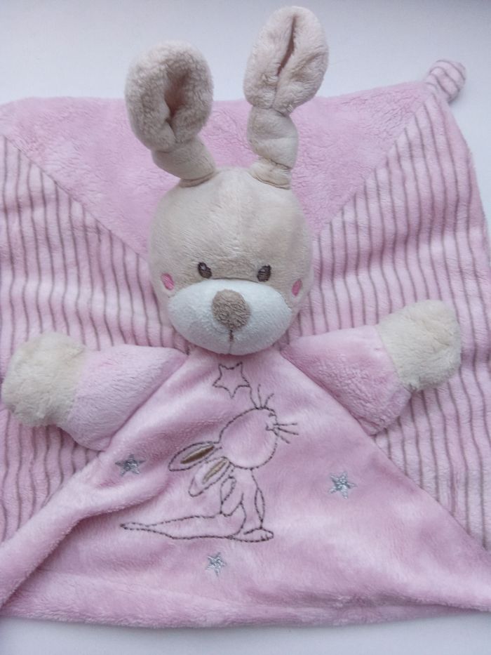 Doudou mouchoir fille motif chien Kiabi, rose, rayure, broderie , rayures