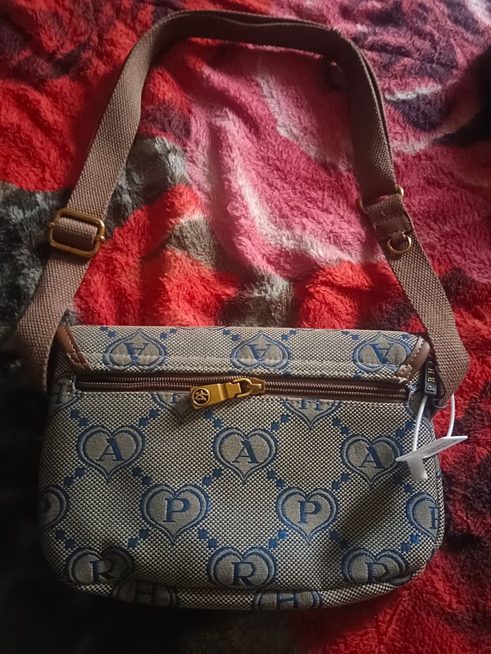 Sac bandoulière marque PRHA neuf avec étiquette exelente qualité couleur marron et bleu pailleté
