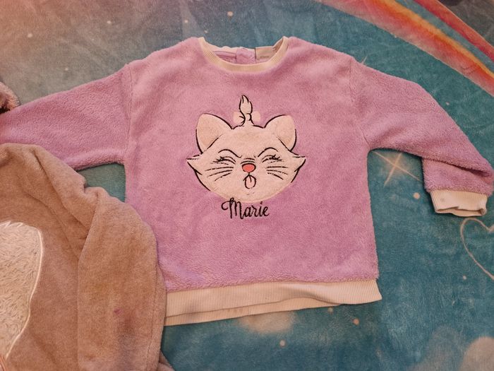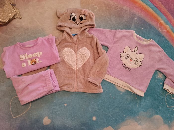 Lots vêtements 36 mois Veste Disney de 3 ans avec deux vraies poches fermeture éclair 🤎 Pull Marie Disney Baby 36 mois tâché aux poignets et à la ceinture mais encore largement mettable 💜 Pyjama inextens 4 ans mais vaut pour du 36 mois Neuf car trop petit jamais porté 💜