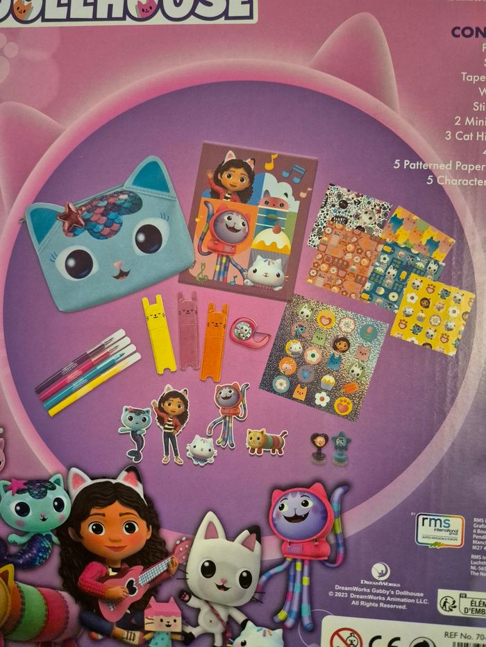 Bonjour La friperie de Nady vous propose cet KIT CREATIF GABBY'S DOLLHOUSE comprends: trousse , album scrapbooking , ruban adhésif , dévidoir de ruban adhésif , planche d'autocollants , 2 mini tampons , 3 surligneurs chat , 4 feutres , 5 échantillons de papier à motifs , 5 découpes de personnages Couleurs : multi neuf Envoie sous 48 à 72 heures N'hésitez pas a venir sur notre profil, vous y trouverez tous nos articles et reste a disposition pour plus de renseignements