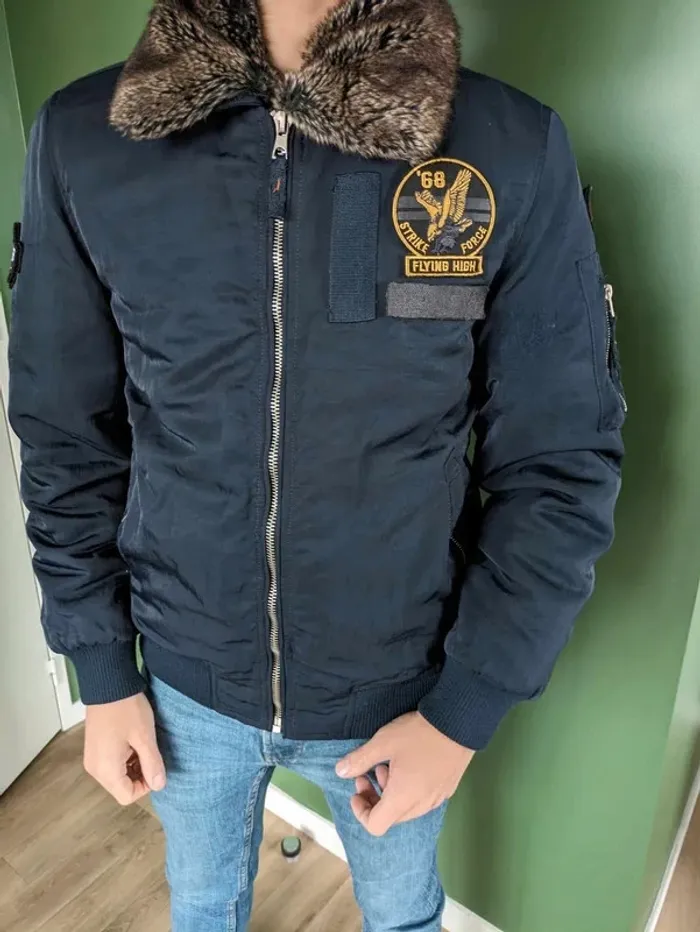 Blouson aviateur Celio taille S. Excellent état. Poches intérieures et extérieures. Éléments scratchés.