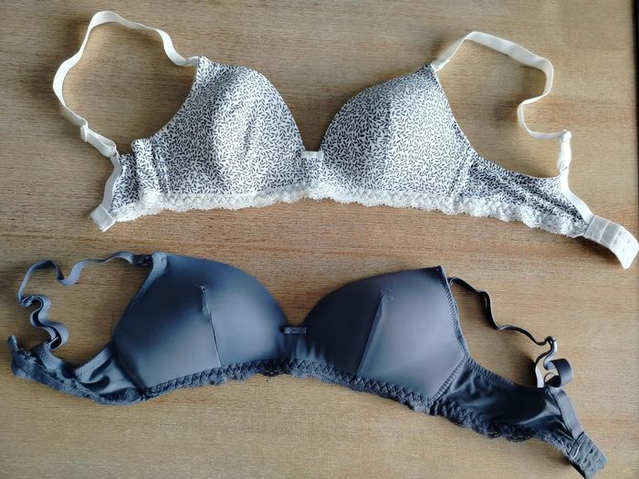 Vends lot de 2 soutiens-gorges d'allaitement taille 90 B En bon état. 5 euros les 2
