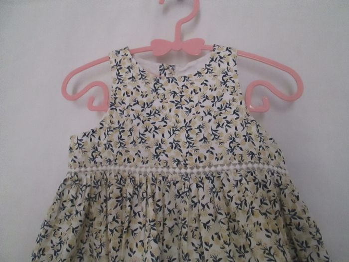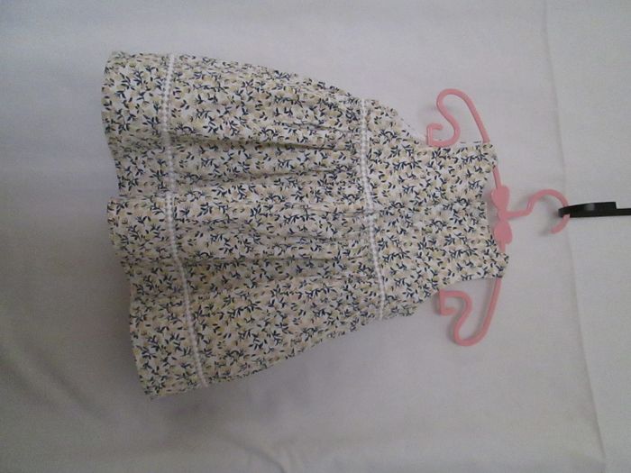 Vends robe Bout'chou marine & jaune. Doublée sur toute la longueur. Boutonnage sur la partie supérieure du dos. 100 % coton. Taille 6 mois. Neuve, jamais portée. Pour plus de choix, allez consulter mes autres annonces.