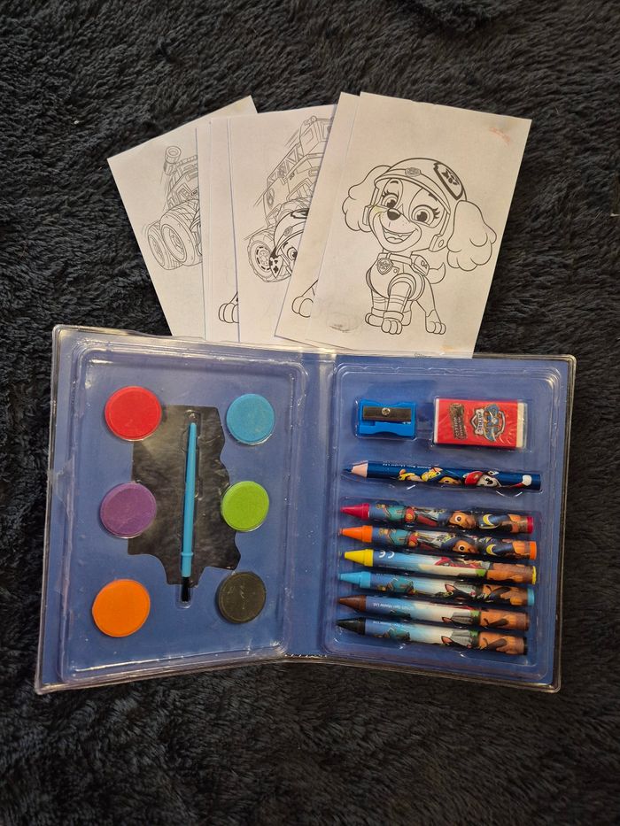 Bonjour La friperie de Nady vous propose cet ENSEMBLE POUR COLORIAGE PAT PATROUILLE comprends: 6 crayons , 6 aquarelles , 1 pinceau , 8 images à colorier , 1 crayon de couleur , 1 gomme , 1 taille- crayon Taille; 11.5x15 cm Couleurs : multi Neuf Envoie sous 48 à 72 heures N'hésitez pas a venir sur notre profil, vous y trouverez tous nos articles et reste a disposition pour plus de renseignements7