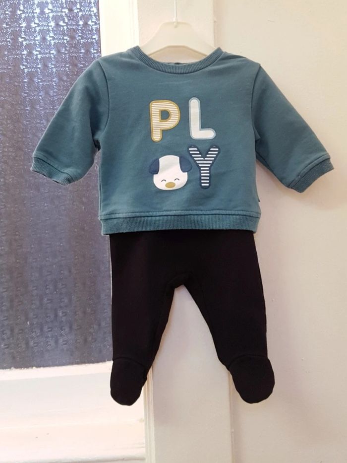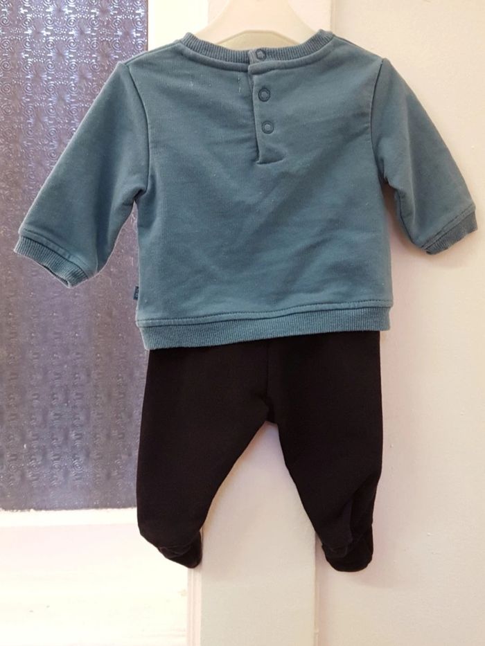 Lot de 2 articles taille 3 mois : sweat bleu pressions au dos Obaibi + Pantalon matière molleton avec pieds bleu marine Jacadi, très bon état, pas de tâches ou trous, envoi soigné. Obaibi + Jacadi, 3 mois.