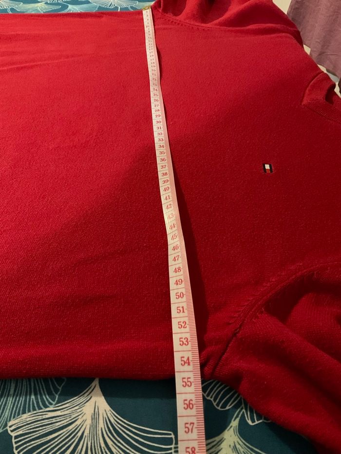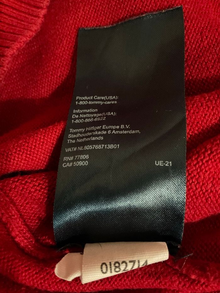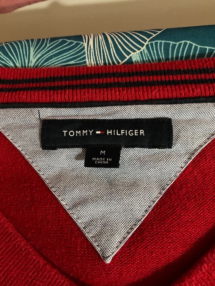 Taille M Très bon état Pull col V rouge pour homme Tommy Hilfiger Logo brodé 100% coton Dimensions en photos Vêtement lavé et repassé Envoi rapide et soigné
