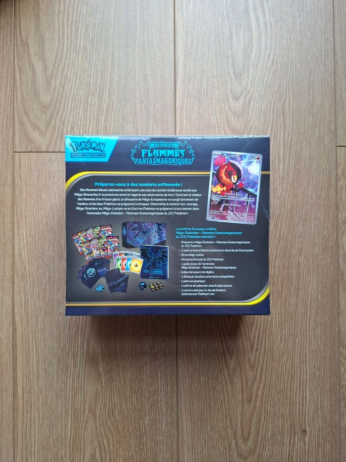 ETB Pokémon ME02 Flammes Fantasmagoriques 🗒 État : Scellage clean. 📌 Remise en main propre possible dans le 78, 92 et 75. 📦 Envoie dans les 24h - 48h. L'article est proprement emballé afin d'éviter les mésaventures lors du transport !