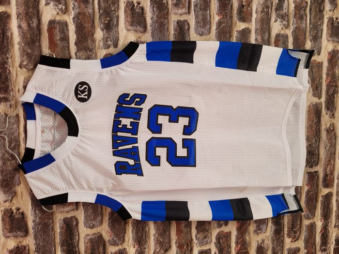 Réplique du maillot de l'équipe de Basket-ball des Ravens de Nathan Scott de Tree Hill de la série les frères scott (One tree hill). Jamais porté, taille L #onetreehill #nathanscott #lucasscott #ravens #frerescott #jersey #basket #basket-ball #scott