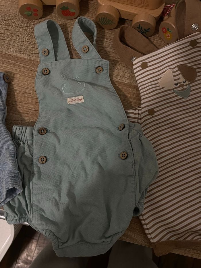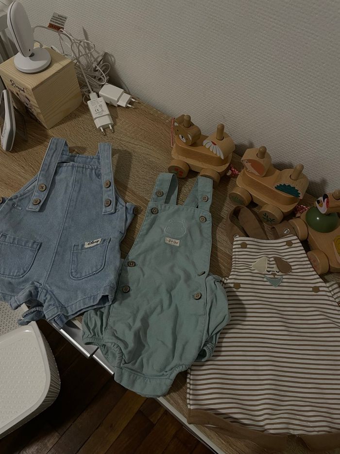 3 jolies petite salopettes 3 mois (jamais portés ,car pas la bonne saison ) -1 Disney -1 orchestra - 1 autre mais la marque n’est pas connu 🩵 N’hésitez pas à faire des lots