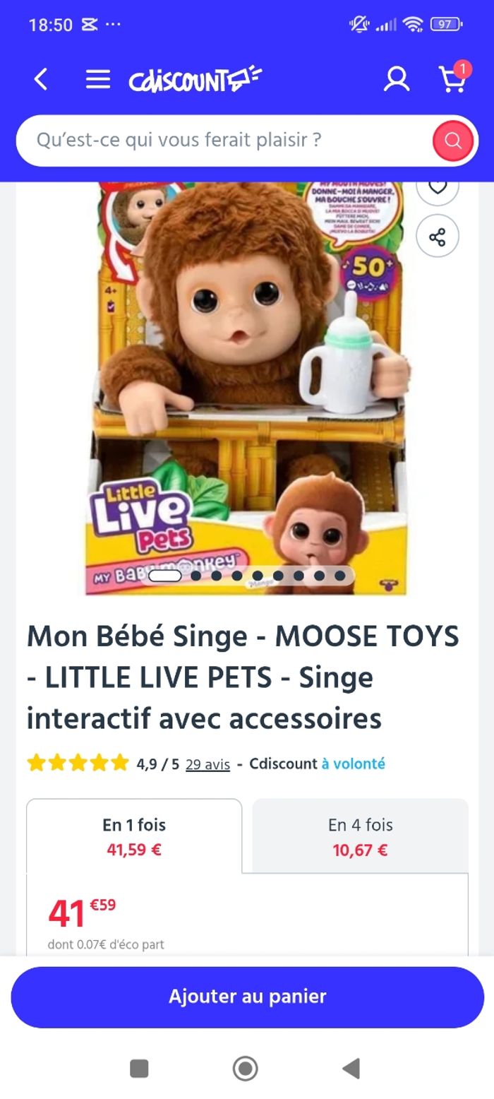 Mon bébé singe interactif excellent état Ma fille s'en est servi 1 seule fois ( acheté fin octobre)