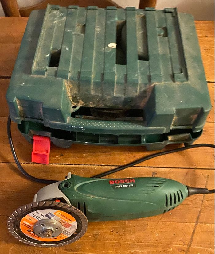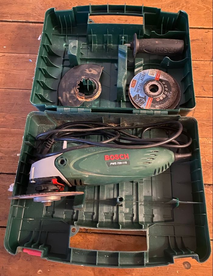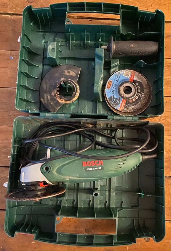 Meuleuse d'angle BOSCH PWS 720-115. - Coffret et accessoires inclus. - Récupéré à 79160 Coulonges sur l'autize ou je peux poster par Mondial Relais ou shop2shop - Chronopost uniquement.