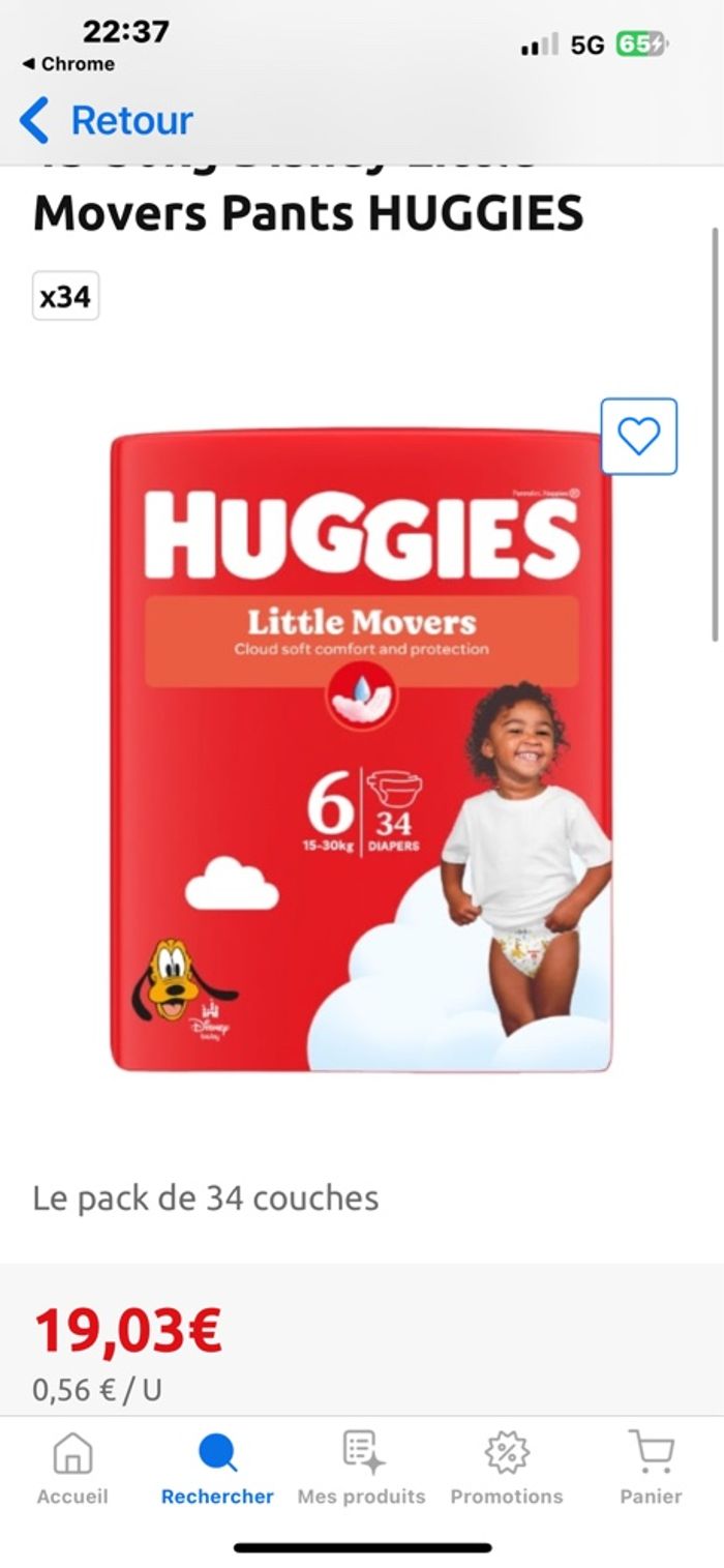 3 Paquets de couches Huggies pants taille 6 1 paquet 15 2 paquets 23 3 paquets 40 (au lieu de 57 euros et des poussières) Possibilité de prendre qu'un seul paquet 1 Paquet coûte 19