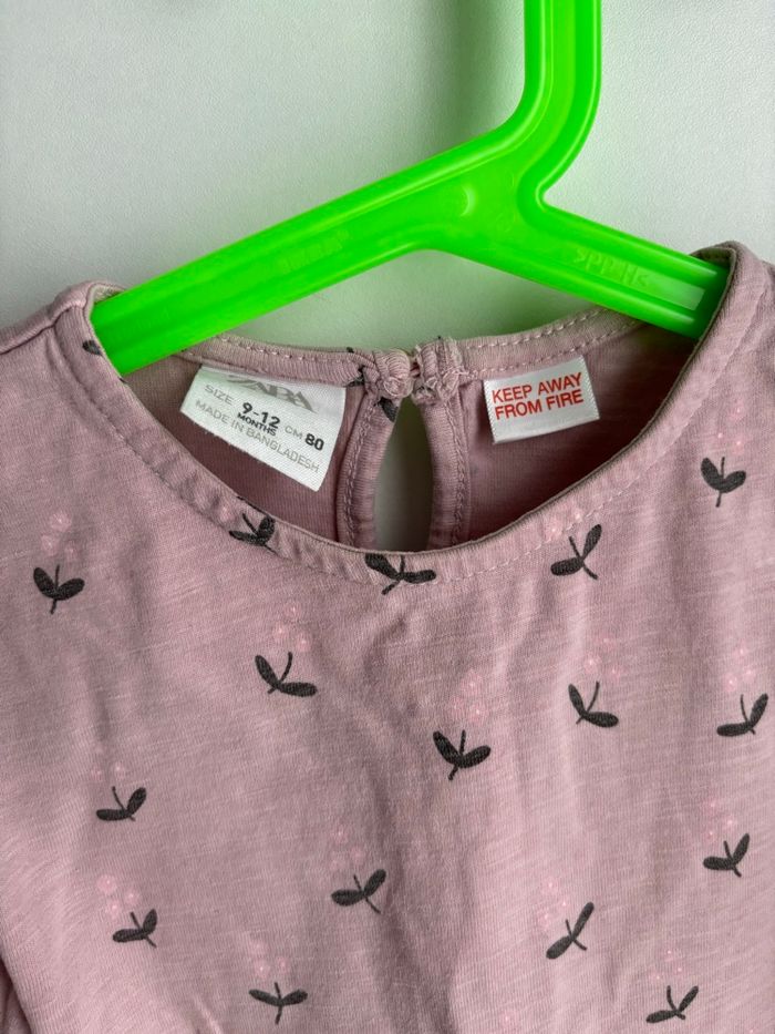Blouse Zara vieux rose imprimé fille 9/12 mois
