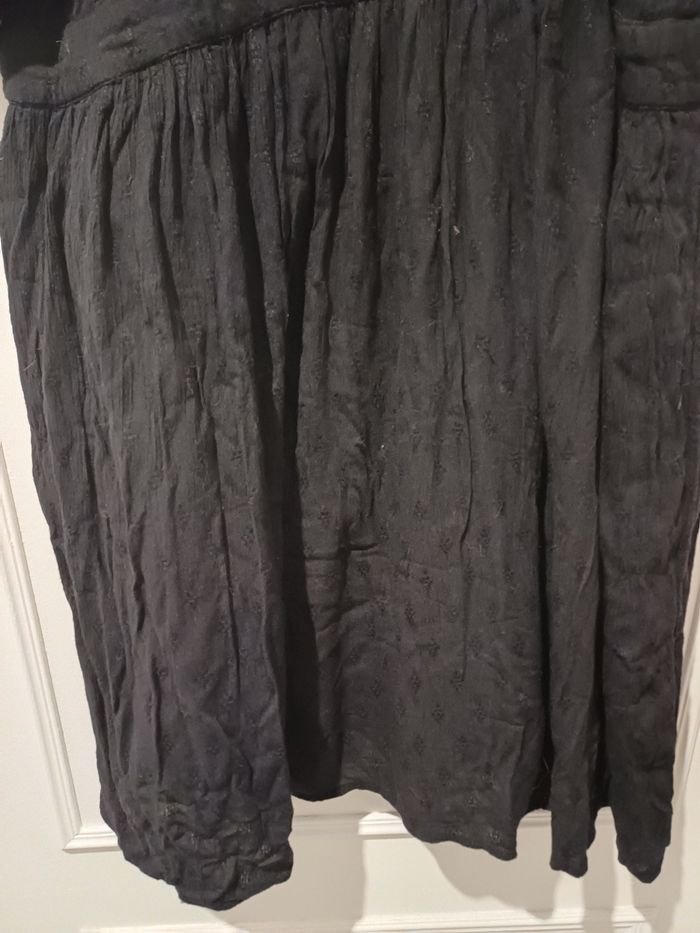 Jolie robe noire avec broderies, manches bouffantes avec broderie petits carreaux ouverts, longueur jusqu'au coude serré au bout décolleté en v fermeture a l'avant avec des boutons tout le long, ceinture sous poitrine, doublure noir en coton Très bon etat, joli rendu Marque promod L'étiquette a ete retiré normalement taille 42 Longueur totale 97 cm x largeur sous aisselles 59 cm x largeur ceinture sous poitrine 50 cm cm N'hésitez pas à me contacter pour plus de renseignements et à regarder mon dressing pour faire un lot