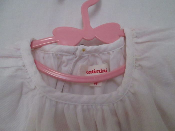 Vends robe blanche Catimini avec motifs. Doublée sur toute la longueur. S'attache avec un bouton derrière. 100 % coton. Taille 6 mois. Comme neuve, portée une fois. Pour plus de choix, allez consulter mes autres annonces.