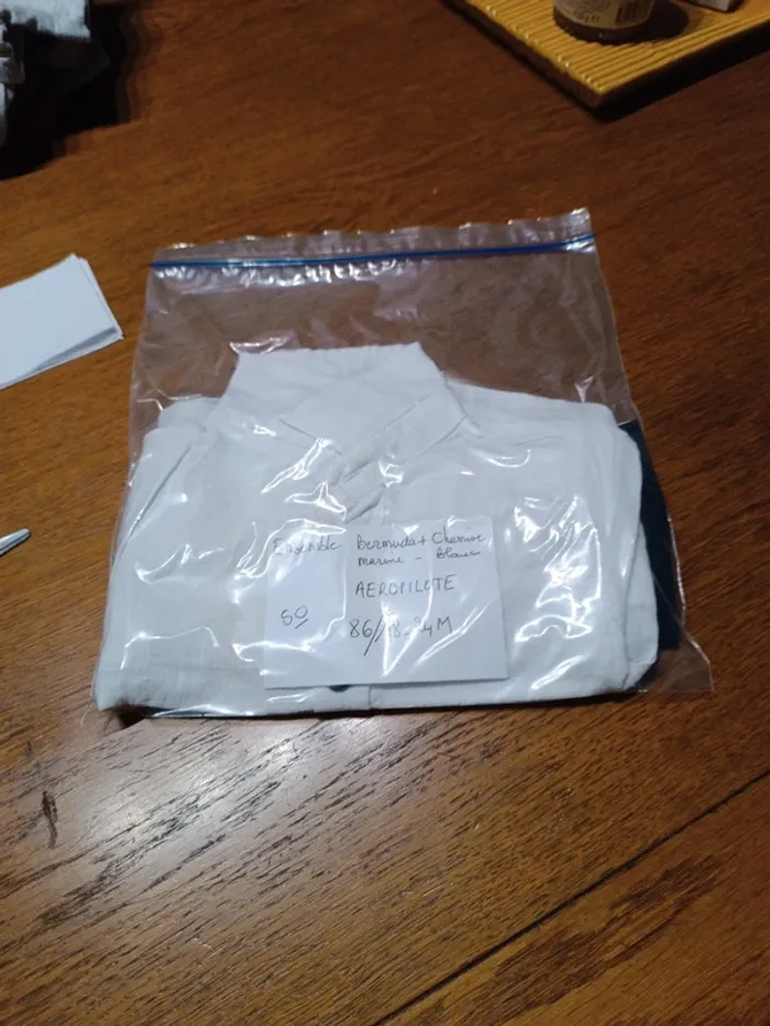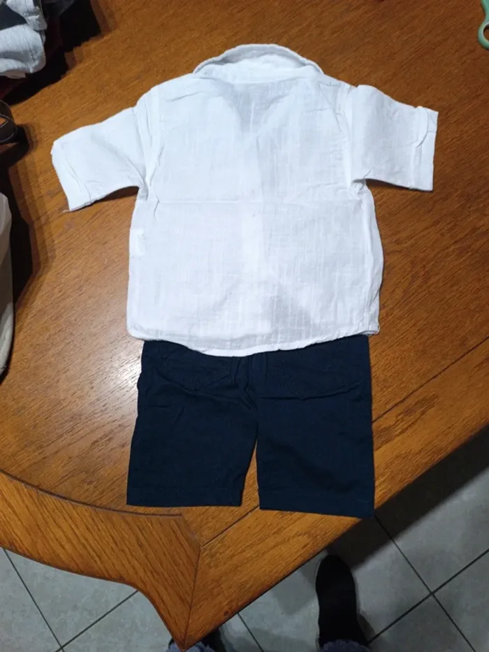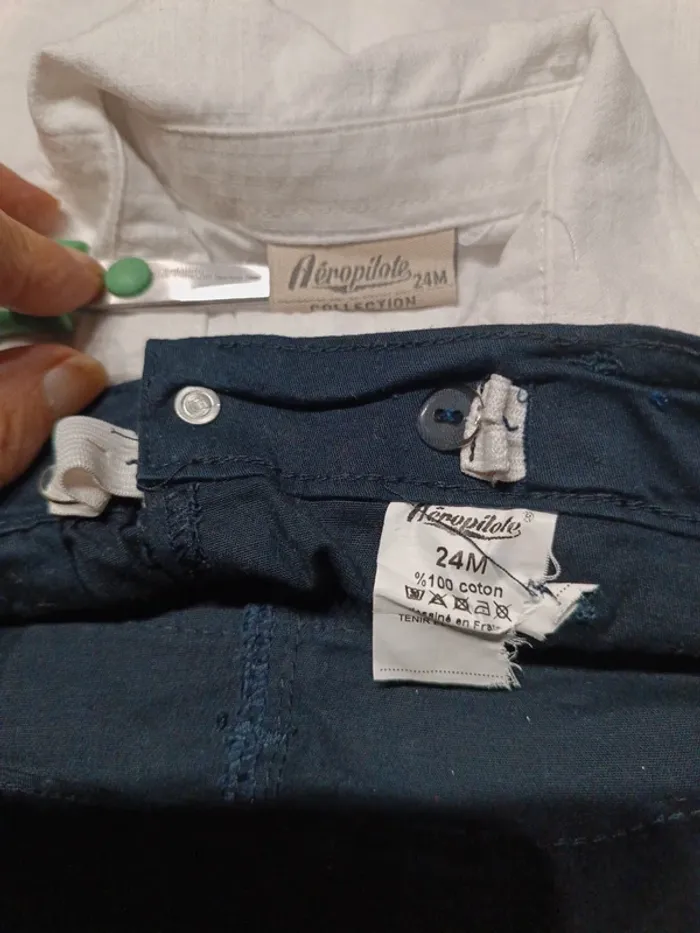 Ensemble Aeropilote 86-18/24M. Chemise blanche et bermuda marine. 100% coton. Neuf