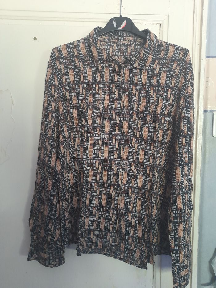 Chemisier en très bon état Il présente 2 poches au niveau de la poitrine et ferme avec 7 boutons (1 bouton de secours est cousu sur l'étiquette). largeur épaules : 43 cm largeur d'aisselle à aisselle : 51 cm hauteur : 61 cm composition : 100% viscose N'hésitez pas à regarder mes autres ventes pour profiter des réductions sur mon dressing !