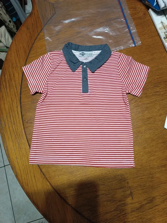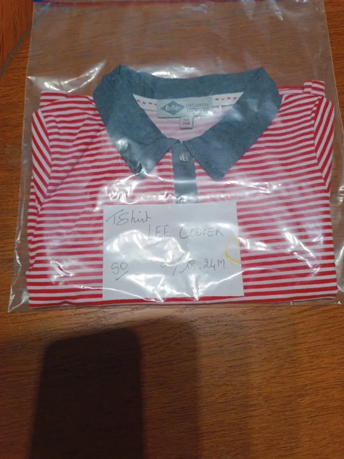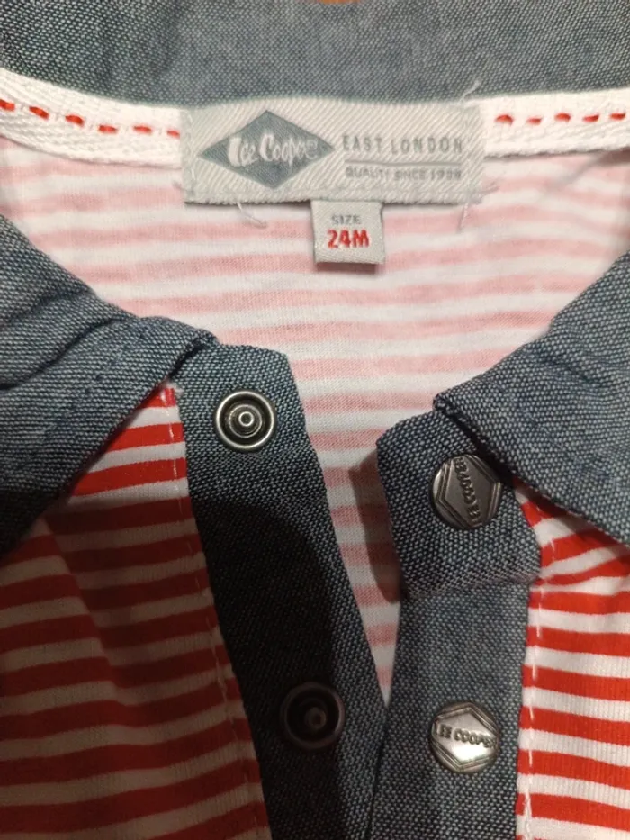 Polo rayures rouges Lee Cooper 86-18/24M. 66% polyester, 34% coton. TBE