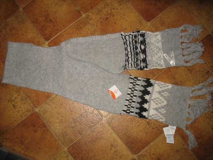 #Accessoires_Garçon_Nathg2210 ÉCHARPE GRISE GARÇON "OKAIDI" - NEUVE - 5 / 6 ANS - n°11 Écharpe grise avec motif marine/blanc - Franges - Matière : 10% lapin angora - 35% laine - 35% viscose et 20% polyamide. Article neuf avec étiquette. Possibilité d'envoyer d'autres photos sur simple demande. Maison non-fumeur - Sans animaux. Réduction lot activée. Allez voir mes autres ventes, je vide les placards. Beaucoup de vêtements de marque et beaucoup de jouets. Remise en mains propres ou possibilité d'envoi au tarif en vigueur à votre charge. Retour Refusé. Pour tout renseignement, n'hésitez pas à me contacter, je répondrai volontiers à vos questions. Réponse Assurée. Pour Consulter mes autres annonces tapez Nathg2210.