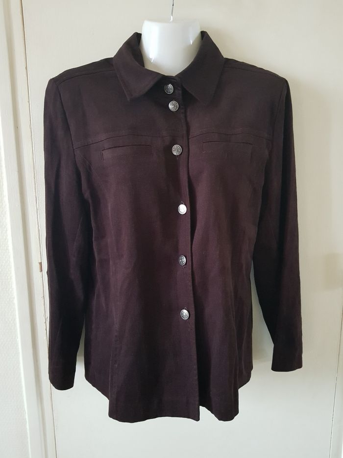 Chemise à manches longues, coupe droite, coloris marron foncé. Boutonnage sur le devant, style élégant et intemporel. Très bon état