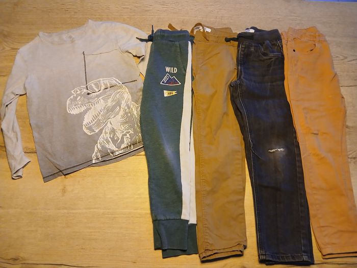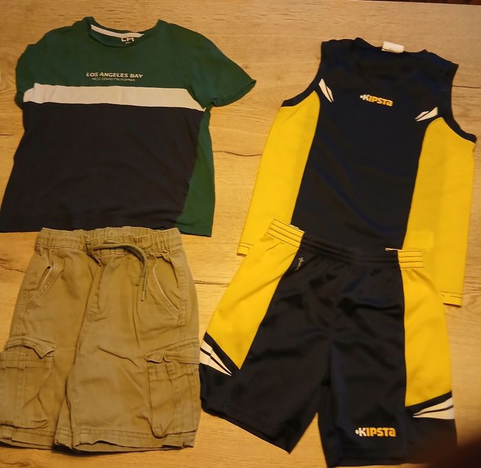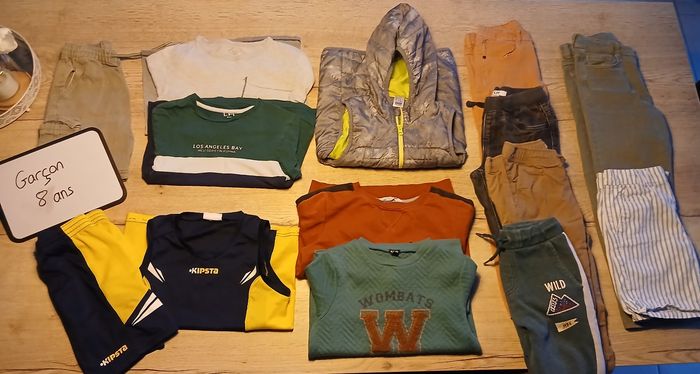 Vends lot de vêtements pour garçon taille 8ans de toutes marques qui comprends : - 1 doudoune sans manche avec capuche - 1 tenue de basket - 2 pull - 1 short - 1 maillot courte manche - 1 tee shirt longue manches - 4 pantalons + donne 1 pantalon et 1 short en 9ans (dernière photo)
