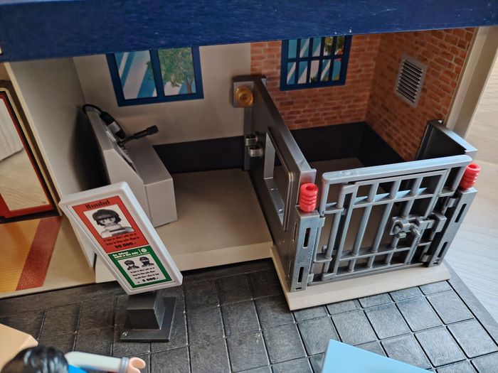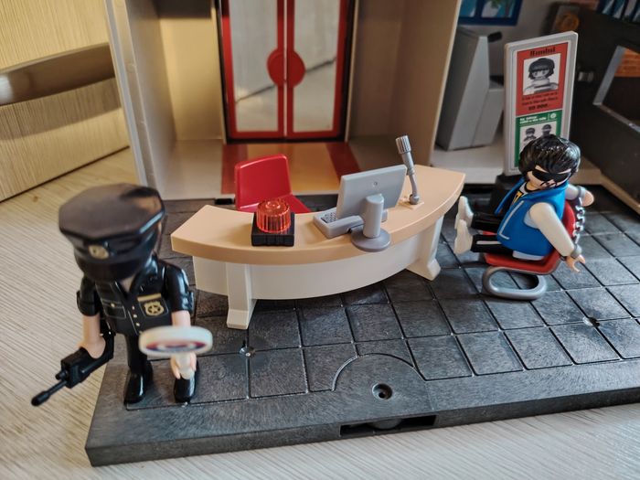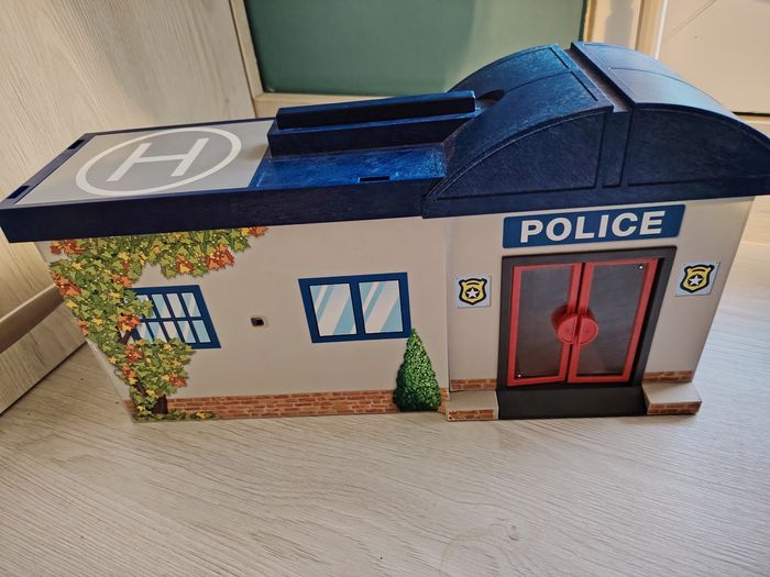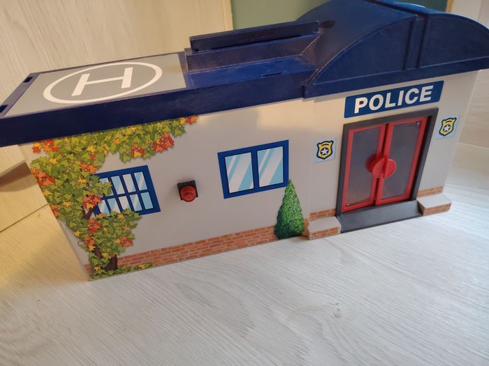 Commissariat playmobil transportable avec accessoires et deux figurines policier et malfrat. Tous mes lots peuvent être remis en main propre sur antony dans le 92.