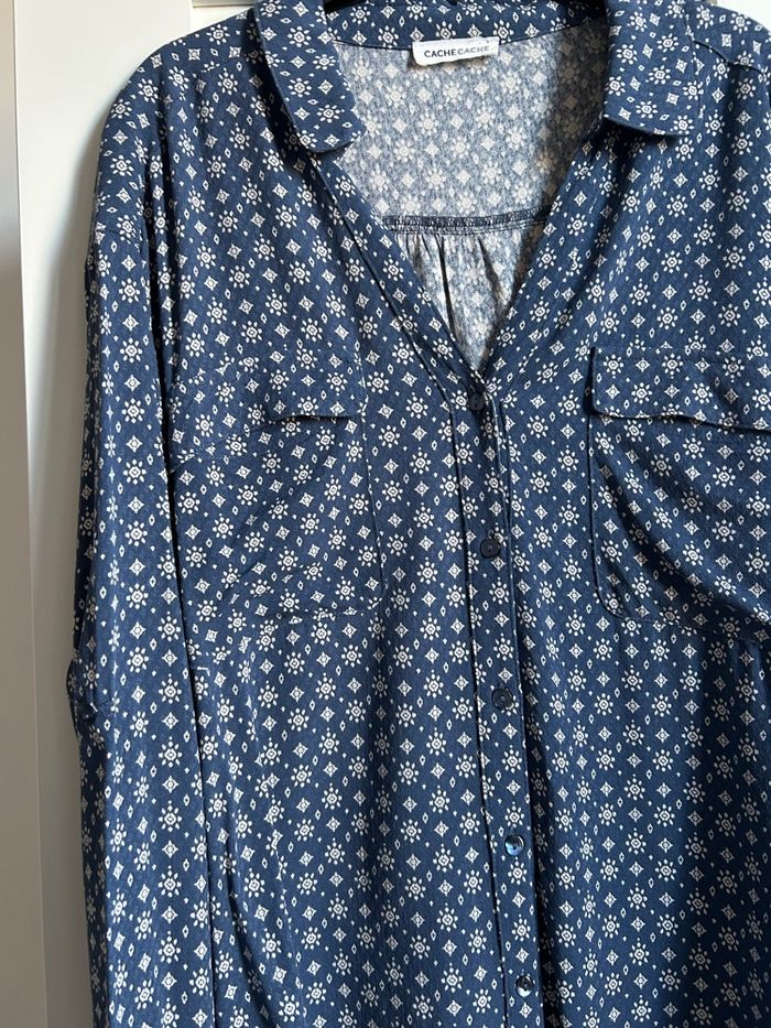 Chemise marine à motifs Neuve Cache Cache Taille L - photo numéro 2