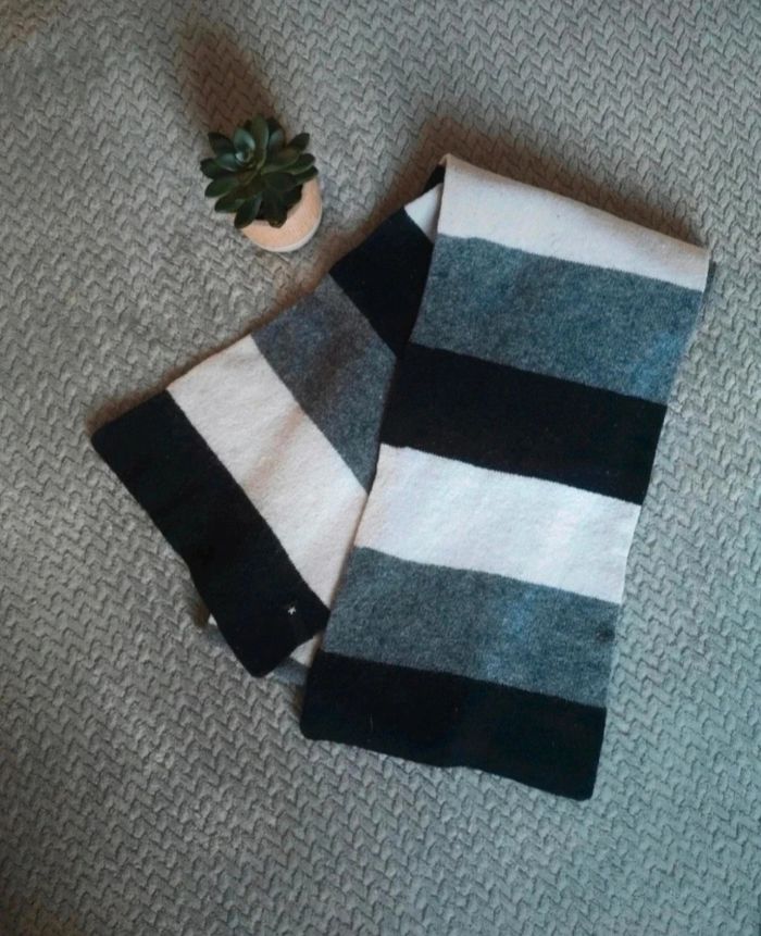 Écharpe homme tricolore (noir gris blanc) de la marque celio 1m90 sur 21cm #écharpe #homme #accessoire #hiver #celio #noir #blanc #gris