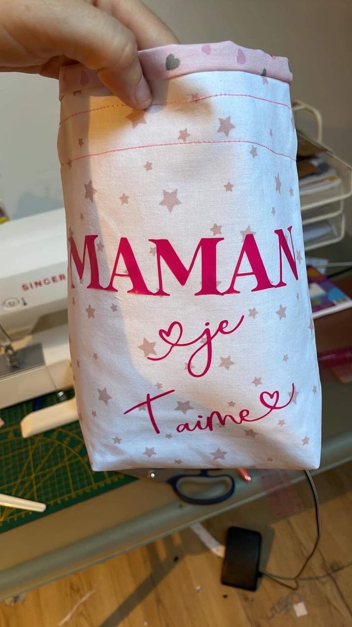 Pochon personnalisé Dimension 20x25 cm Matériaux : pochon en coton ruban de satin Lavable en machine et sèche linge déconseillé Livraison à partir de 2,50€ Ou retrait à l atelier à Binche (sur rendez-vous ) Au prix de 10 € plus 1,50 € pour personnalisé 🥰❤️