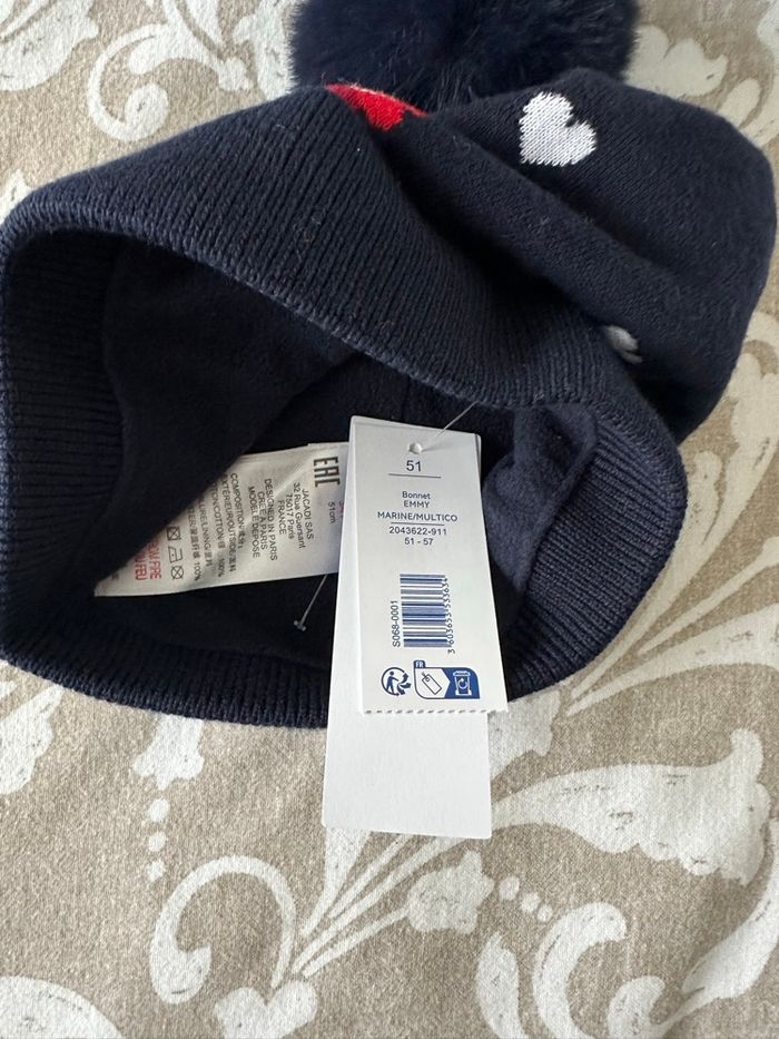 ⚠️ j’accepte les offres raisonnables ! Je peux supprimer la boite cadeau et mettre un petit colis si besoin 🙂🌸 Bonnet Marine et cœurs rouges/blancs avec noeuds rouges Bonnet taille 51 #LeDressingdeRaphaele_accessoire ❤️