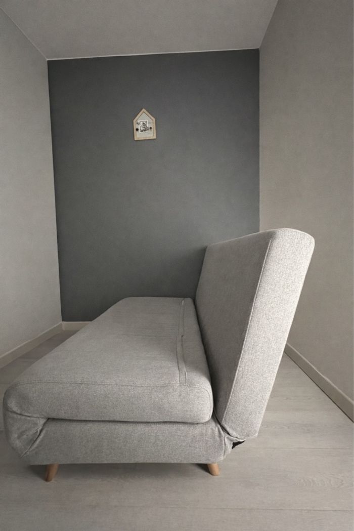 Canapé clic-clac acheté en 2020, utilisé principalement comme canapé de lecture pour enfant. Très peu servi en mode lit. Très esthétique en mode canapé, surtout agrémenté de coussins, idéal pour créer un coin cosy. - Très bon état - Aucune tache, aucune trace d’usure - Tissu propre et bien entretenu Dimensions : - Largeur / assise : 140 cm - Couchage déplié : 140 x 190 cm - Hauteur dossier : 85 cm - Profondeur plié : 80 cm Mécanisme clic-clac : Le mécanisme peut paraître un peu capricieux au premier abord, mais fonctionne sans problème. Vidéo possible sur demande pour montrer le fonctionnement. Transport : À récupérer Aix Sud. De mémoire, le canapé ne se démonte pas entièrement. Transporté à l’époque dans une Citroën C3 avec 2 personnes à bord. Possible de le transporter à moitié déplié : environ 140 x 130 cm, hauteur 40 cm max. Idéal comme canapé d’appoint, canapé enfant, coin lecture, chambre d’amis ou bureau. N’hésitez pas à me contacter pour plus d’infos.