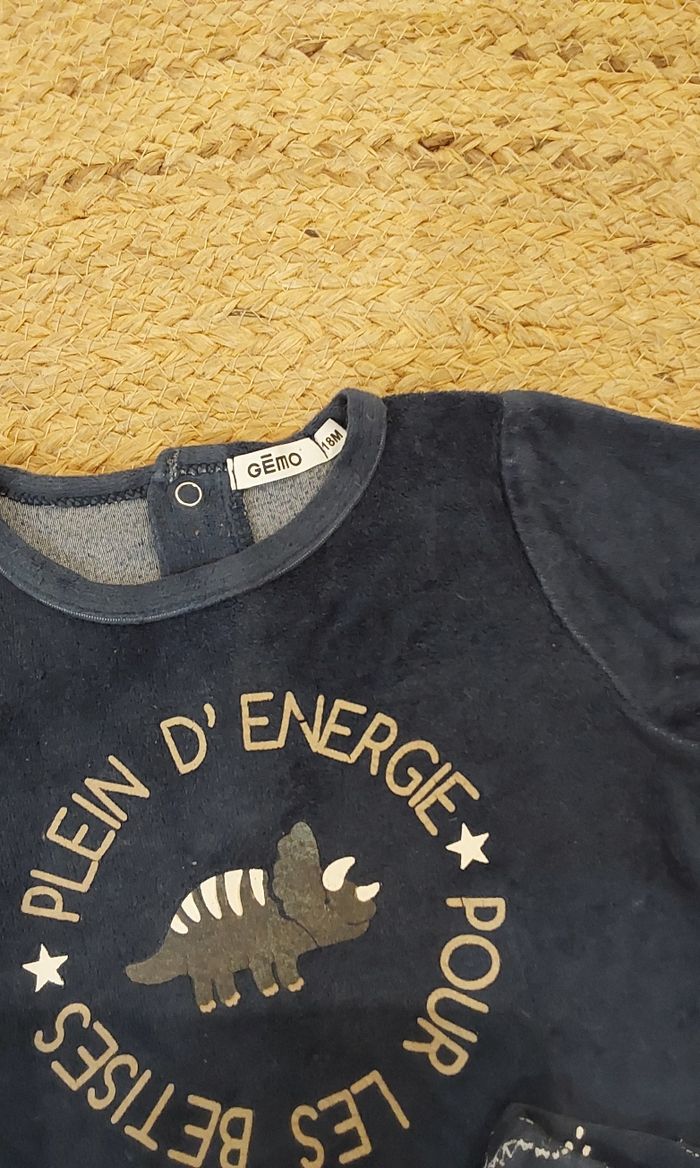 Pyjama bleu marine velour 12 /18 mois 81 cm Gemo Bleu marine imprimé petits dinosaures blancs