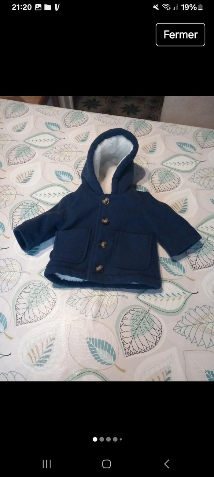 Magnifique blouson chaud dedans matière molletonné douce et vraiment chaud acheter 45 euros kiabi il et nickel .taille 3 mois .comme neuf jamais mis