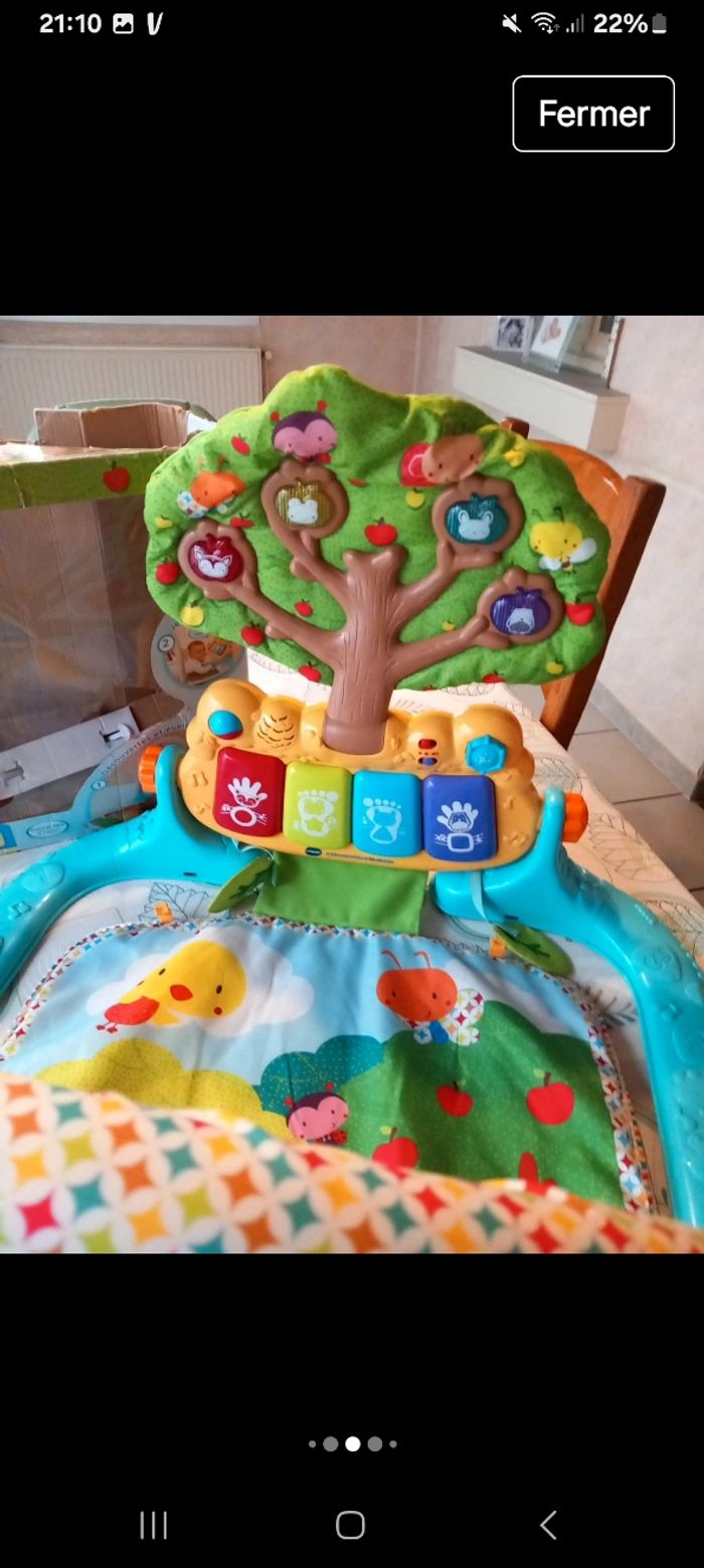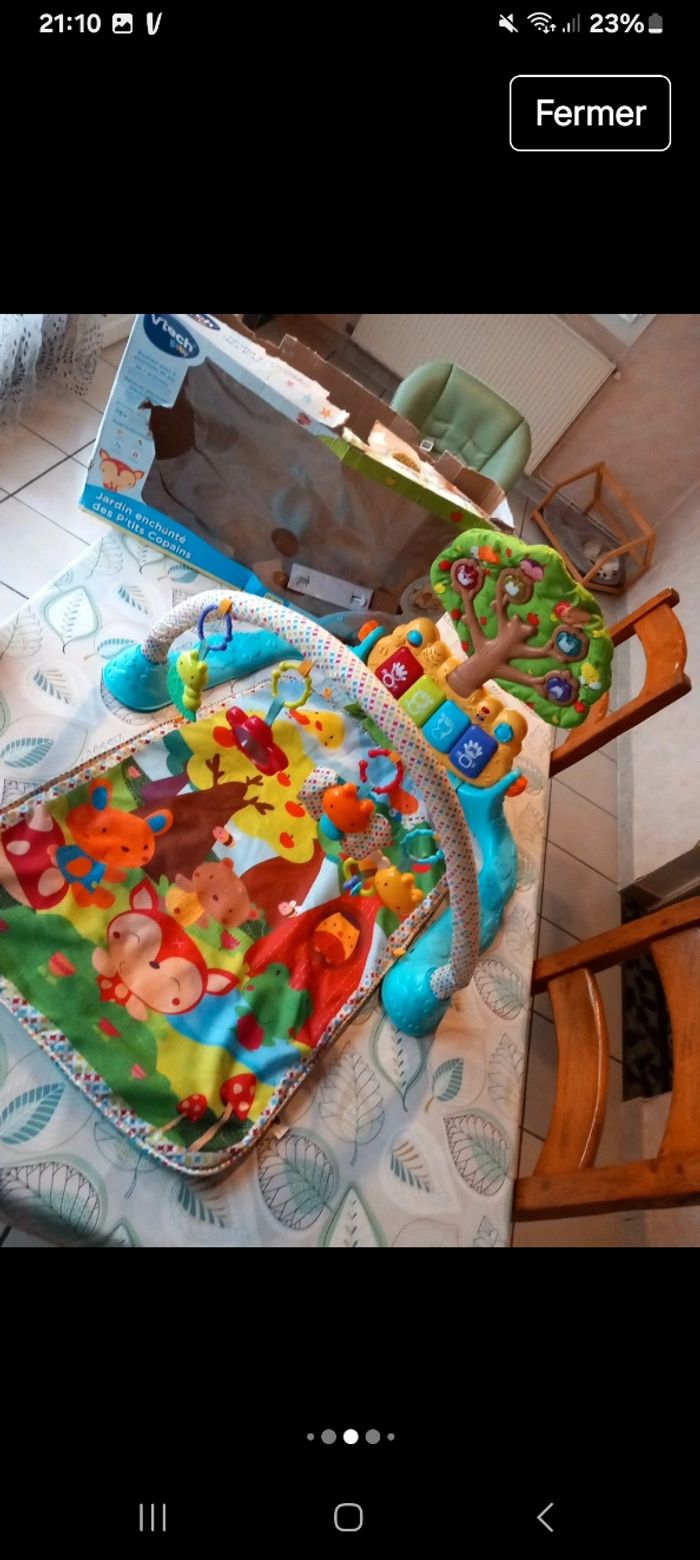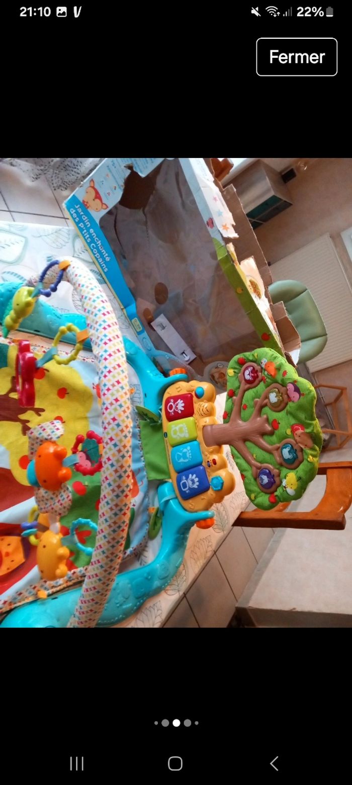 Un tapis d'éveil évolutif qui accompagne Bébé dans ses découvertes ! Le Jardin enchanté des P'tits Copains de VTech est un tapis d'éveil évolutif spécialement conçu pour Bébé, qui se transforme en centre d'activités lorsque Bébé grandit. 59e99 neuf . Article encore en carton . Carton un peu abîmer