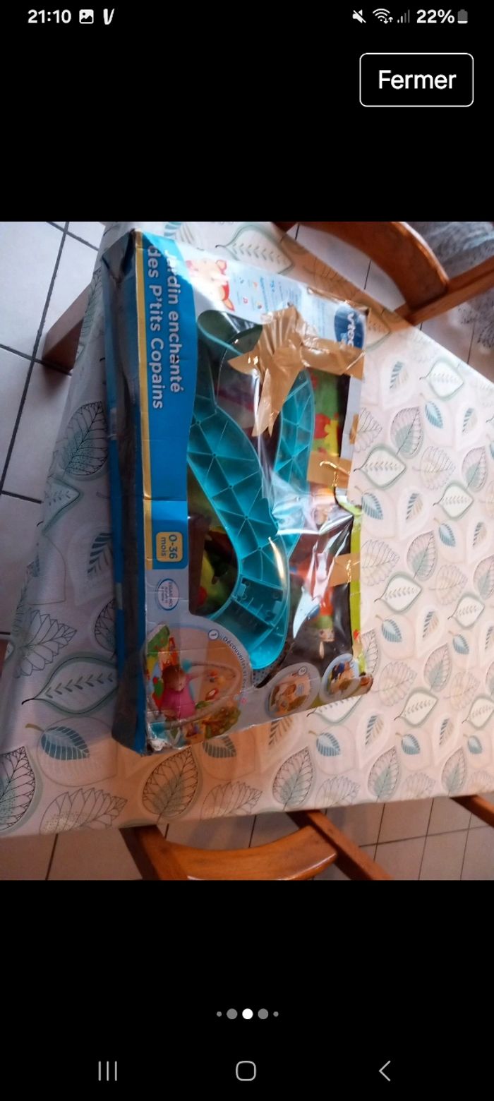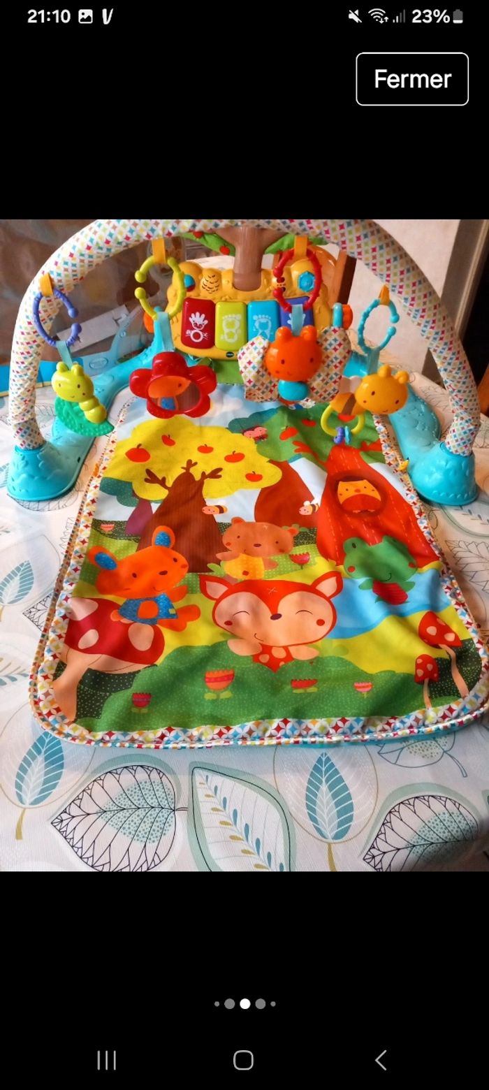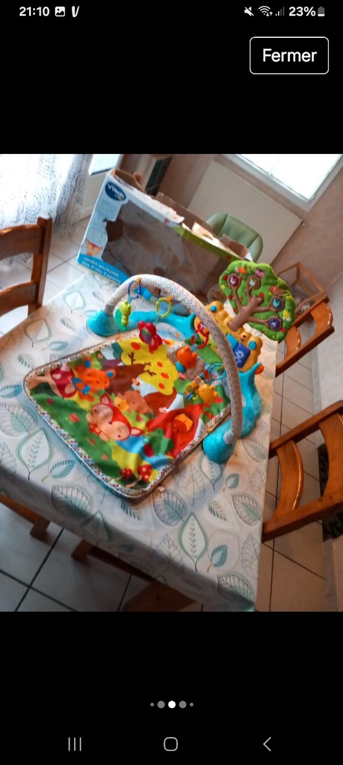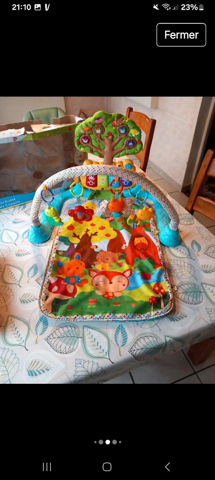 Un tapis d'éveil évolutif qui accompagne Bébé dans ses découvertes ! Le Jardin enchanté des P'tits Copains de VTech est un tapis d'éveil évolutif spécialement conçu pour Bébé, qui se transforme en centre d'activités lorsque Bébé grandit. 59e99 neuf . Article encore en carton . Carton un peu abîmer